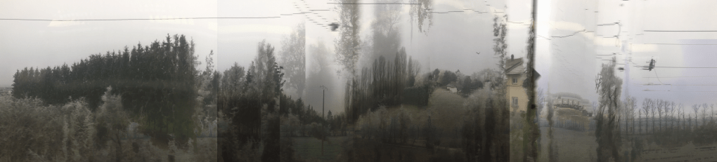 On a long journey every part of the view starts to smudge, loop, merge, and you become unsure if you already saw what you see. It seems to echo your mind flow and intertwine with your memories. You unconsciously place ideas and feelings on the trees and valleys, sometimes leaving them there forever. From the journey you will keep only some flashes, colours, smells and names of stops… Here they sell toys, here they sell glass, here you probably need to be careful.
